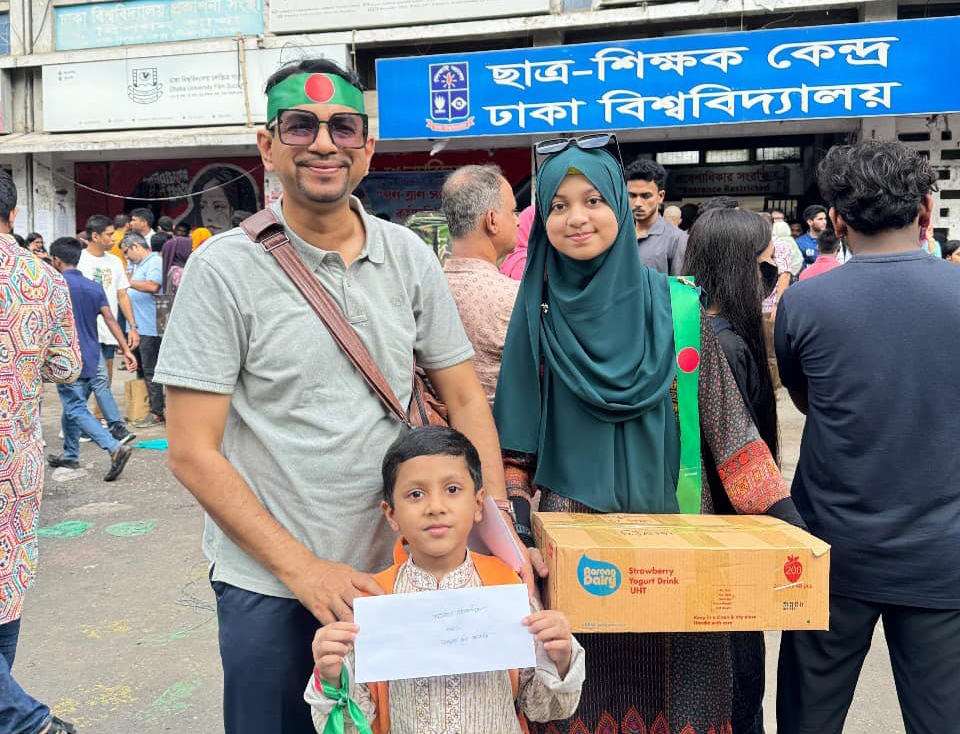 Social Welfare Day for the flood affected people. Dhaka University students called and we joined their relief collection effort through cash and kind. We met a hero of the time too, a coordinator from Dhaka University. Amazingly, people rushed to their call for helping the flood affected people like another flood. Thousands of volunteers are collecting relief from lacs of people. Incredible scene! People's love for and trust in the students are very evident. It looks like a new Bangladesh.”